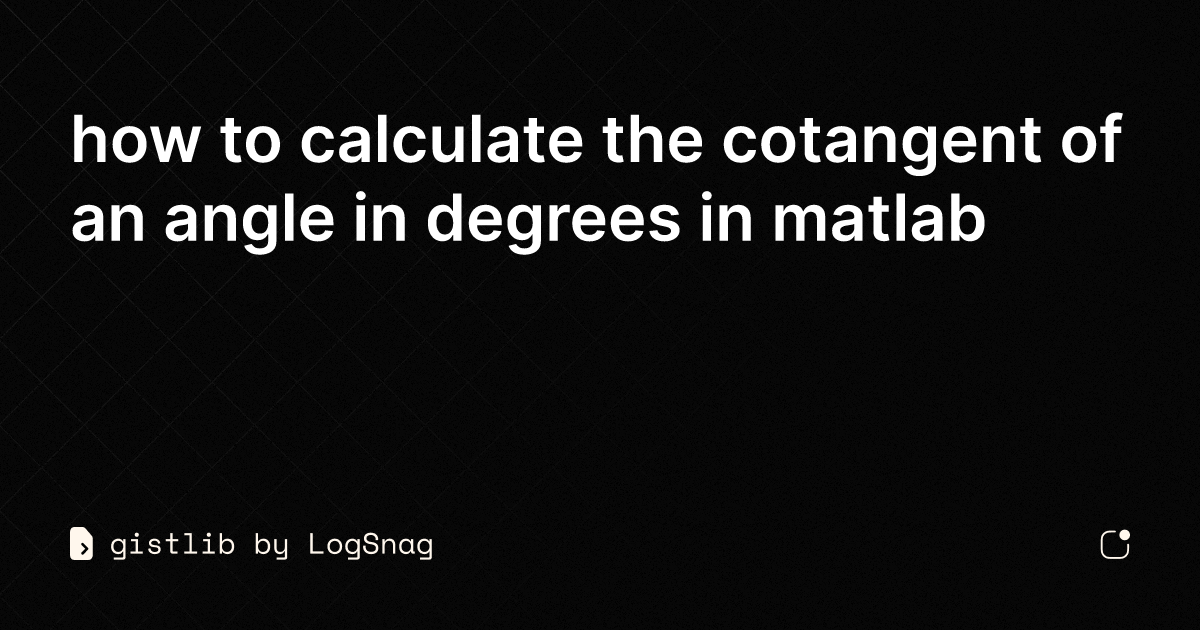 gistlib how to calculate the cotangent of an angle in degrees in matlab
